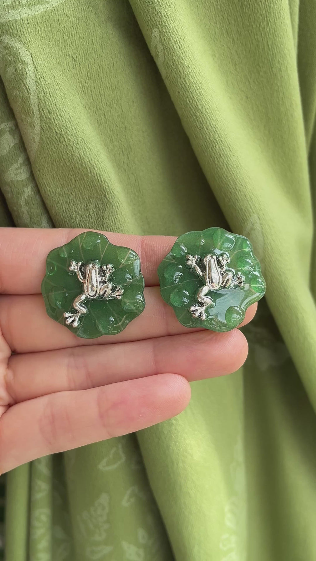 Water drop lily pad frog stud earrings
